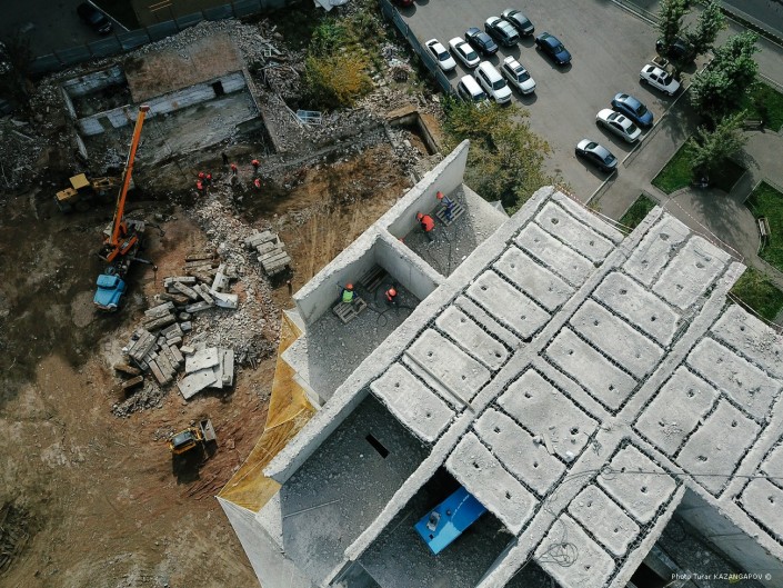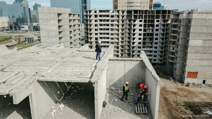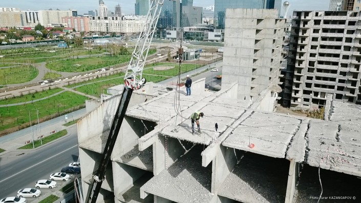 Техническое обследование показало, что здание аварийное. По словам руководителя проекта по демонтажу ТОО "Нур Астана Курылыс" Алиакбара Умбеталина, бывший застройщик использовал марку бетона, которая не соответствует техническим нормам.