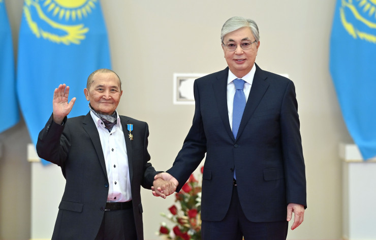 "Орден "Даңк" первой степени сегодня вручается Булату Баекенову, стоявшему у истоков становления спецслужб нашего государства. Государственная премия в области науки и техники имени аль-Фараби присуждается Кунсулу Закарье и Амангельды Саданову. Кунсулу Закарья возглавляет группу ученых, создавших отечественную вакцину против коронавируса QazVac и ведущих сейчас разработку еще нескольких аналогичных препаратов. Амангельды Саданов сформировал научную школу, изучающую новое и актуальное для нашей страны направление - биотехнологию и микробиологию почв", - сказал Токаев.