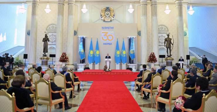 "30-летие независимости - это значимая веха в истории нашей многовековой государственности, важный рубеж в летописи современного Казахстана. За эти годы наша страна прошла большой путь, отмеченный большими достижениями и преодолением сложных вызовов. Подавляющее большинство граждан страны своим созидательным трудом вносят значимый вклад в дело строительства сильного и прогрессивного государства", - сказал Касым-Жомарт Токаев.