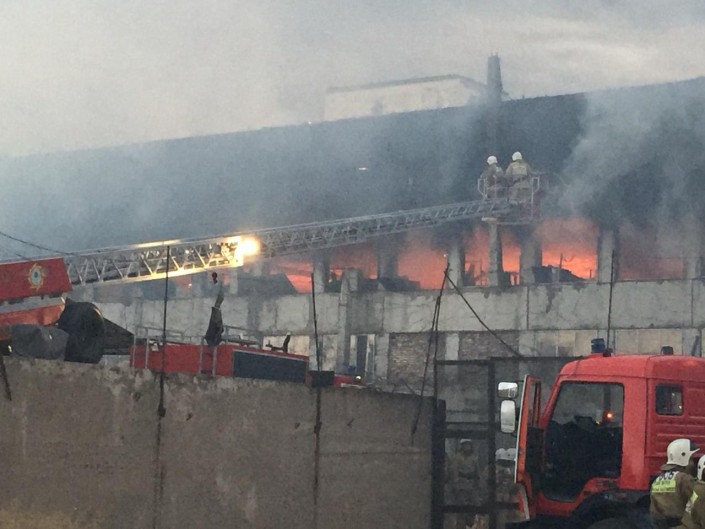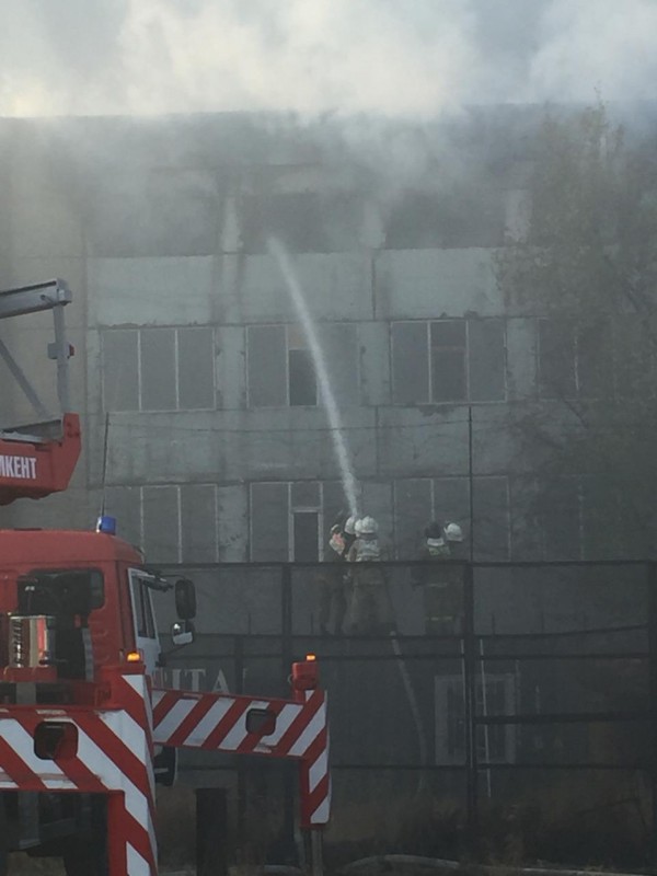 Как тушили пожар на бывшем шинном заводе в Шымкенте