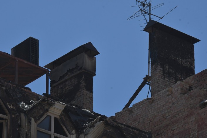 Так "Британский квартал" выглядит сегодня. Вчерашний пожар тушили несколько часов, но огонь значительно повредил несколько квартир на верхних этажах.