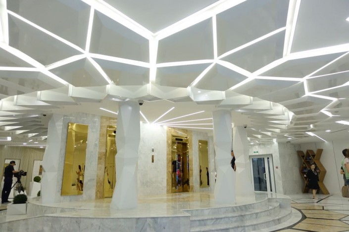 Дополняет новый дизайн установленная на верхней точке монумента люстра, выполненная в виде летающих сказочных птиц Самрук.