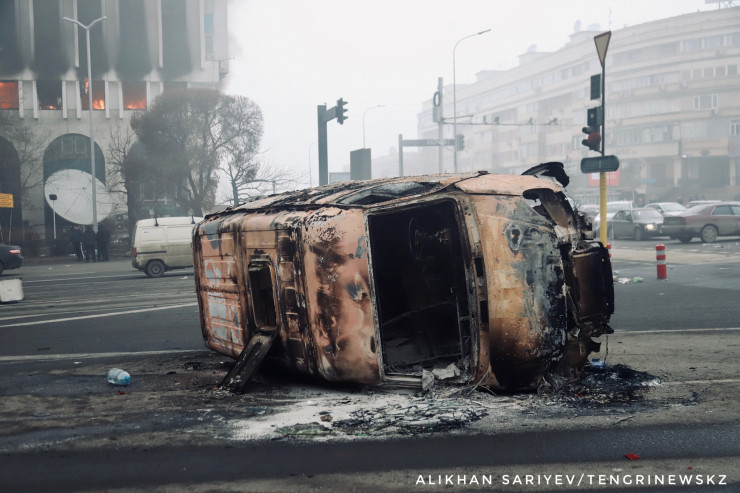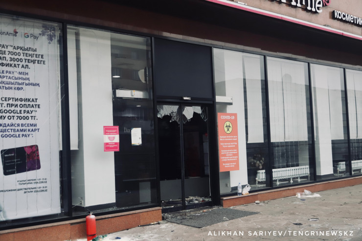 Фотограф нашего издания Алихан Сариев 6 января в 13:40 побывал в районе площади Республики и зафиксировал последствия погромов, произошедших 5 января.