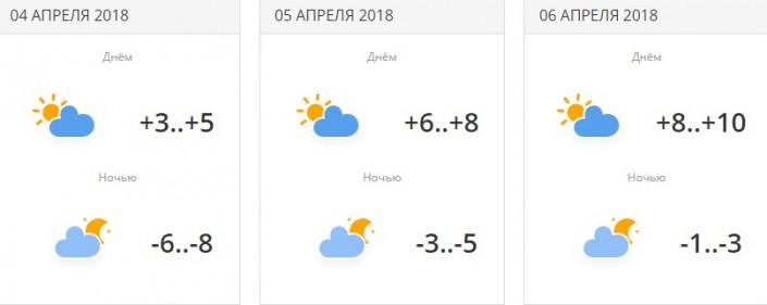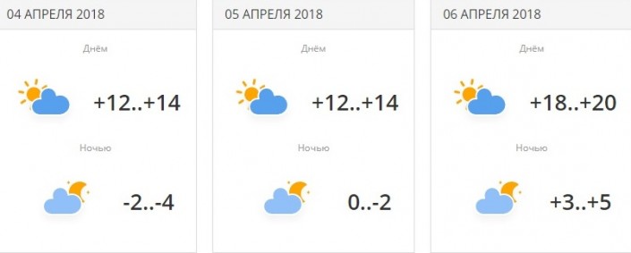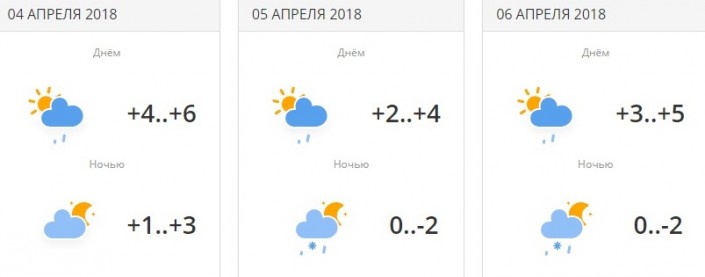 4 апреля ожидается погода без осадков, +17...+19 градусов.