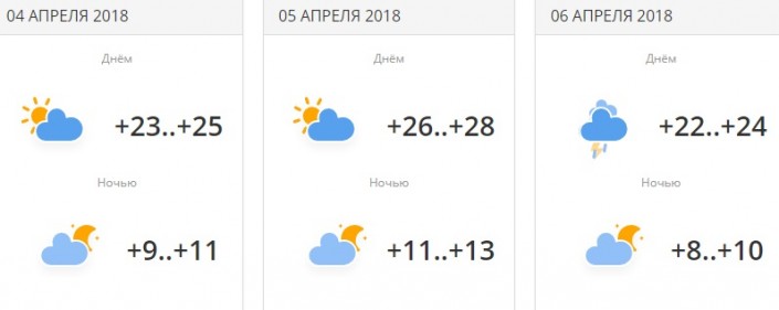4 апреля ожидается погода без осадков, дневная температура поднимется до +23...+25 градусов.
