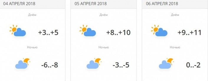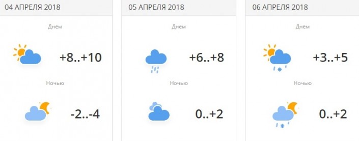 4 апреля +8...+10 градусов. Временами осадки в виде дождя.