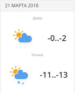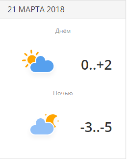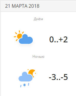 Днем ожидается погода без осадков, переменная облачность. Термометры покажут 0..+2 градуса.