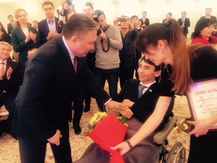 Пожертвовавший 5,5 миллиона тенге детям с онкологическими заболеваниями карагандинец Нияз Сундиталиев стал лауреатом молодежной премии "Кайнар". Парализованный карагандинец награжден в номинации "От чистого сердца". Он получил диплом и денежный сертификат на 200 тысяч тенге из рук акима области Нурмухамбета Абдибекова, передает корреспондент Tengrinews.kz.