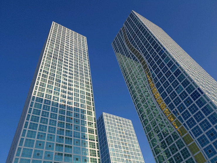 Есілдің жағасында орналасқан "Гранд Алатау" тұрғын үй кешені 2007 жылы пайдалануға берілген. Кешен 19, 28, 37, 43 қабатты төрт тұрғын үйден тұрады. Тұрғындар үйді салған компанияның құрылыс ережелерін бұзғанын тілге тиек етті.