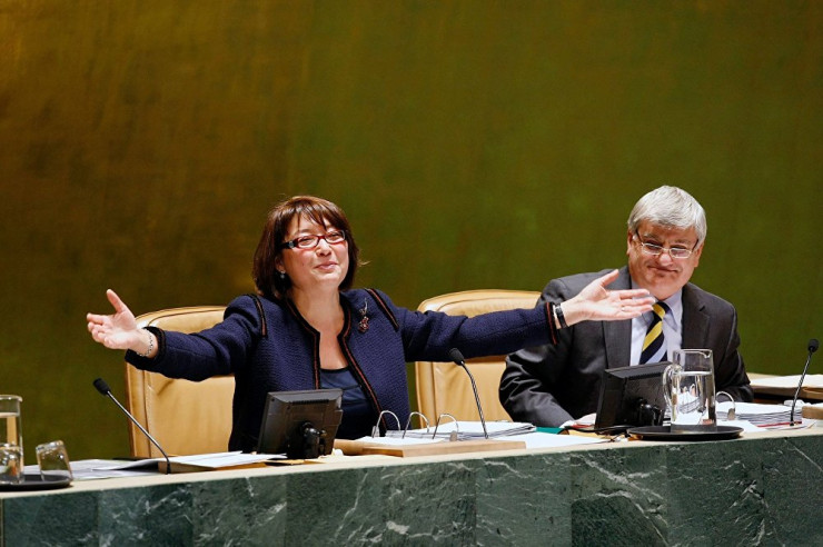 Источник: Facebook AkordaPress / Бырганым Айтимова в должности постпреда РК в ООН во время пленарного заседания 64 сессии Генеральной Ассамблеи ООН