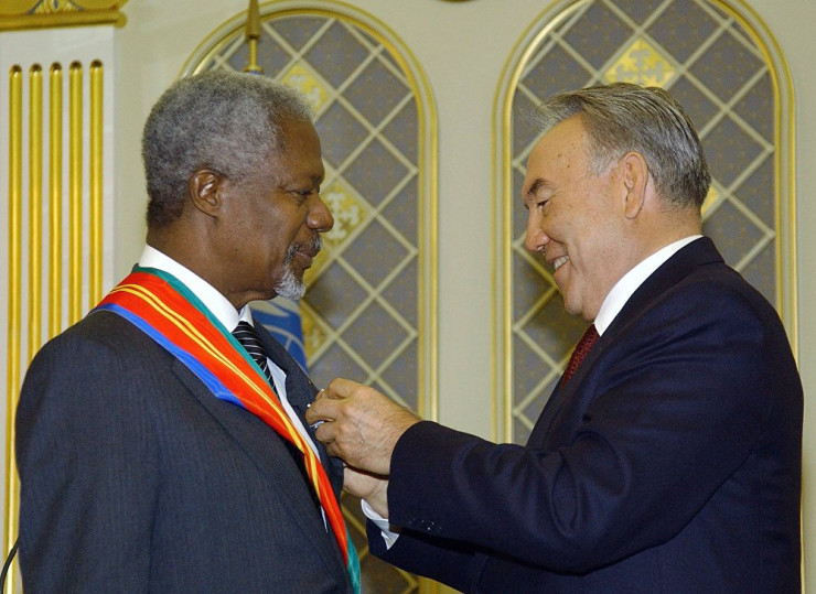 Важным этапом в развитии сотрудничества между Казахстаном и ООН стал официальный визит в Казахстан генерального секретаря ООН Кофи Аннана в октябре 2002 года. При встрече Нурсултан Назарбаев вручил почетному гостю орден "Достык" первой степени.