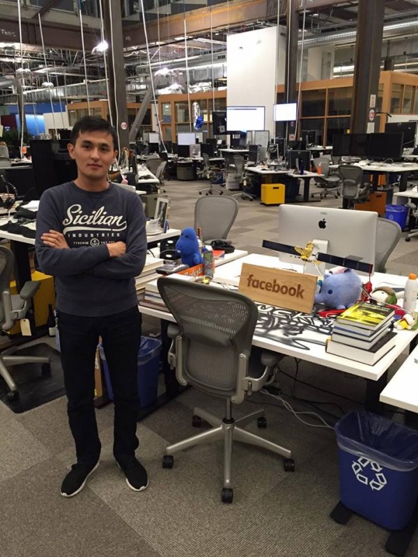 Как рассказал 24-летний казахстанец, выпускник КБТУ, работать программистом в корпорации он начал недавно - с 12 октября 2015 года. Его должность называется Software Engineer at Facebook. Сейчас он работает в головном офисе корпорации в городе Менло-парк в штате Калифорния, США.