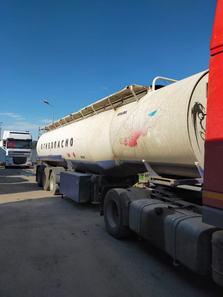 Попытку незаконного вывоза топлива удалось выявить 10 июня в Жамбылской области на пункте пропуска "Айша биби". Здесь сотрудники УЭК ДГД и пограничники задержали машины с подозрительным грузом.