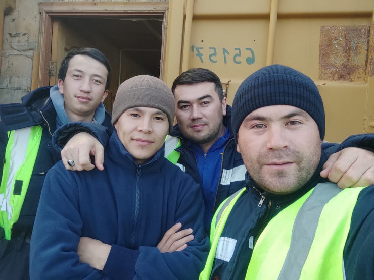 Медет Утегенов (крайний справа) с коллегами по вахте на месторождении Тенгиз