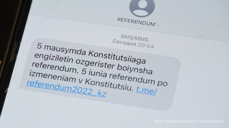 В рассылке указаны дата референдума - 5 июня - и активная ссылка на Telegram-канал REFERENDUM2022.KZ, где публикуются все главные новости о предстоящем событии.