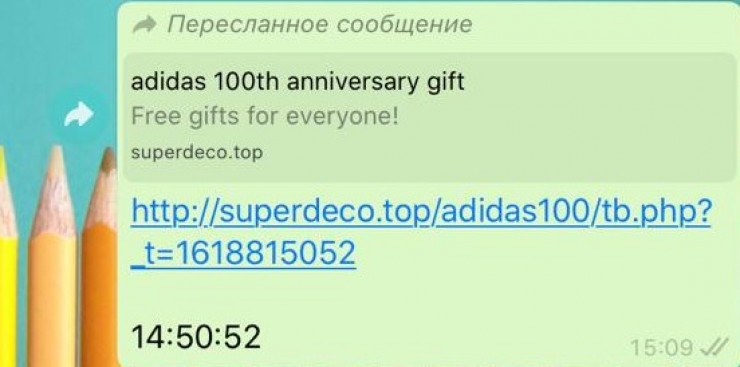 Государственная техническая служба предупредила казахстанцев о небезопасной рассылке в WhatsApp с использованием логотипа Adidas, передает корреспондент Tengrinews.kz.