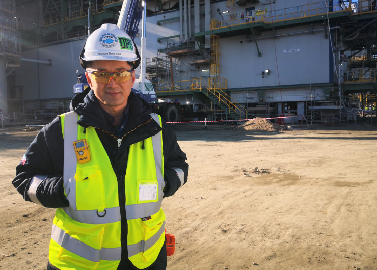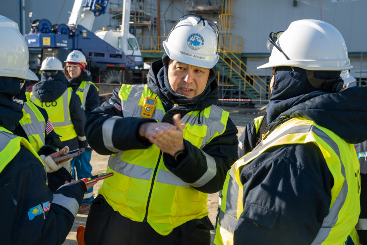 После комментариев о высокотехнологичных объектах Бауыржан Аманбай рассказывает о том, как давно он здесь работает: "Начинал на заводе КТЛ с позиции оператора установки еще 30 лет назад, со дня основания ТШО, поднялся до начальника эксплуатации завода второго поколения, а с 2020 года работаю на проекте ПБР начальником эксплуатации завода третьего поколения".