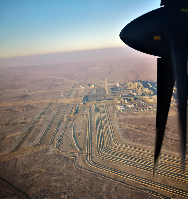 Перелет из Атырау до Тенгиза, что в 160 километрах к югу-востоку от города, занимает около получаса. В основном пассажиры самолета – вахтовики. Ради журналистов-участников пресс-тура, организованного компанией "Тенгизшевройл", в течение 15 минут самолет совершает облет всей территории, включающей вахтовые поселки, административные здания, газомерные установки, заводы, строительные объекты. И хотя на руках большие цифры по вкладу в экономику Казахстана, только с высоты понимаешь, насколько это гигантская территория, насколько масштабен этот проект. На площади в 420 квадратных километров расположены три нефтегазовых комплекса, это все равно что левобережье Астаны или целый город Актобе.