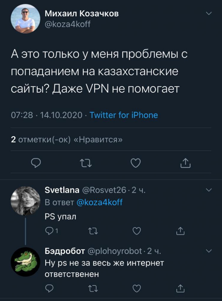 По словам некоторых пользователей социальных сетей, казахстанские сайты оказались недоступны. Также не работали некоторые социальные сети и мессенджеры.
