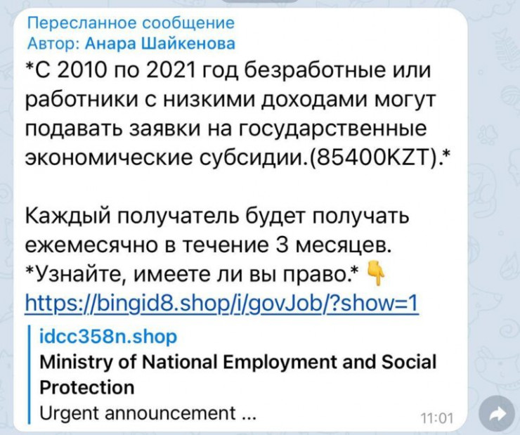 Казахстанцы рассылают фейк о выплате субсидий для безработных