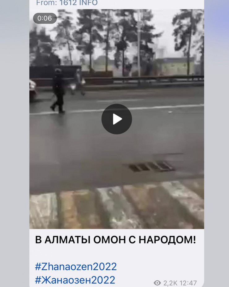 Telegram мессенджерінде Алматыда жедел әрекет ету жасағы наразылық білдірушілер жағына шыққаны туралы видео тарады.