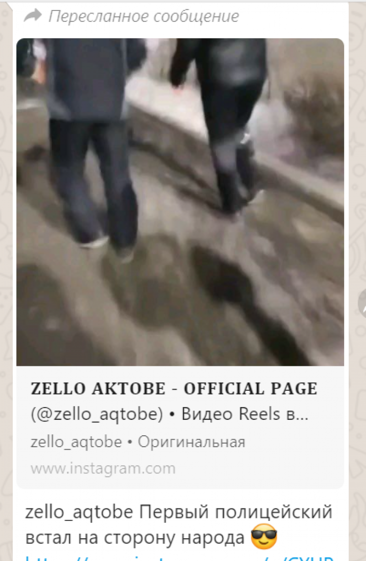 Осыған ұқсас хабарлама Ақтөбеде де тарады. Instagram желісіндегі парақшалардың бірінде "халық жағына өткен алғашқы полицей" туралы пост жарияланды.