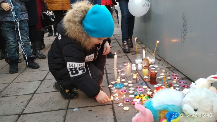 На акции было много детей. Но никто не шумел и не бегал. Даже малыши подолгу смотрели на свечи и шары и никто не плакал. Люди приходили семьями. Многие только сегодня рассказали детям о том, что случилось с их сверстниками в Кемерово.