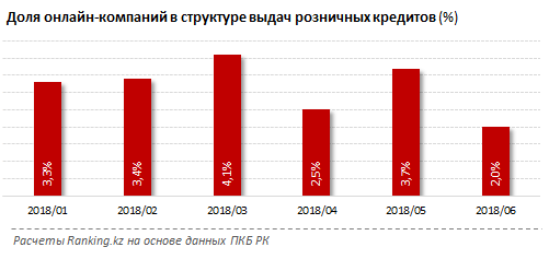Доля онлайн-компаний в структуре выдач розничных кредитов за июнь составила лишь 2 процента, это самый низкий показатель в текущем году.