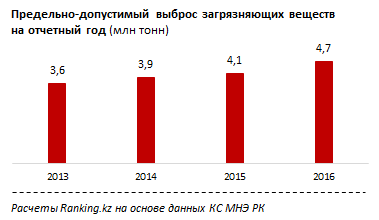 На 2016 год государство установило лимит выбросов загрязняющих веществ на уровне 4,7 миллиона тонн. Предельные нормы загрязнения увеличились сразу на 13,6 процента по сравнению с уровнем на 2015 год.