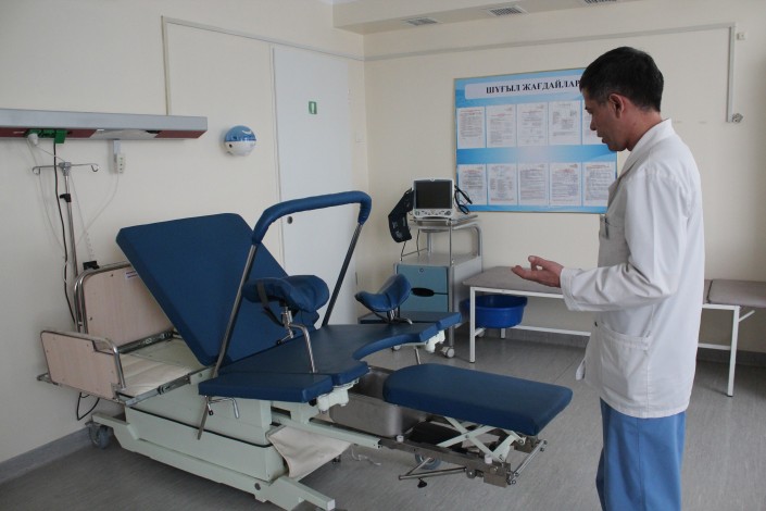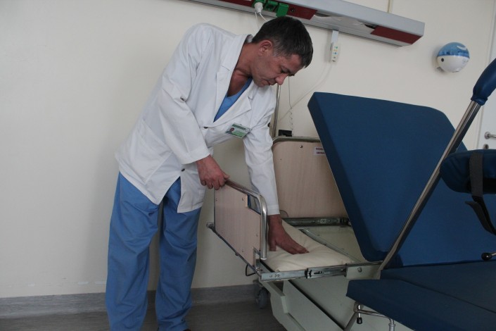 Также на кровати есть перекладина. Это не инновационная составляющая, но это в общем позволяет принимать вертикальные роды, поясняет Сулейменов.