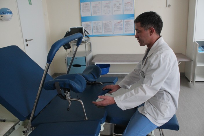 Тем более, по его словам, акушерская кровать удобна для всех участников родов: для роженицы, для новорожденного и для врача, акушера-гинеколога. Можно регулировать, спинку кровати. Стульчик для врача тоже можно регулировать. Он выдвигается и собирается.