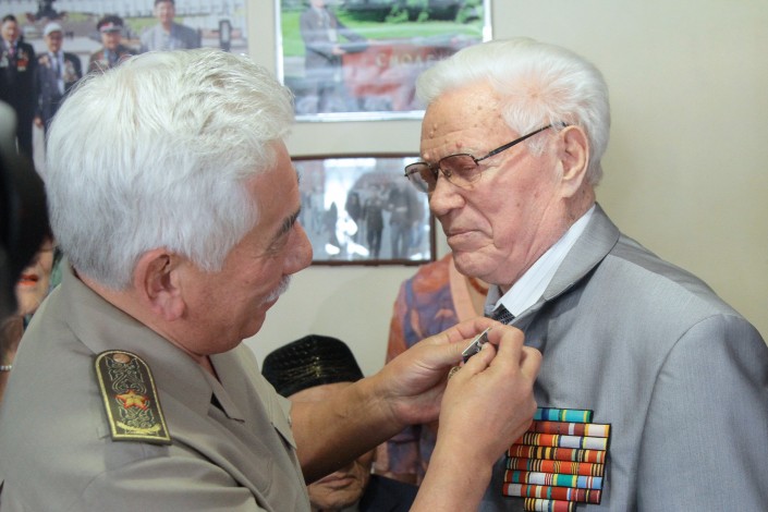 Медали были торжественно вручены пяти ветеранам - Аманжолу Каликову, Габбасу Жуматову, Тамаре Максимовой, Александру Колесникову и Слямхану Жапарханову. Медаль "Дважды героя Советского Союза Талгата Бегельдинова" была также вручена исполнительному директору ОФ "Совет ветеранов" Райхан Жапархановой.