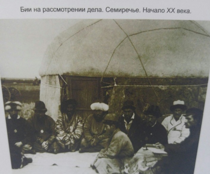 Так выглядели чапан казахского бия и нагрудный знак судебного бия в форме крупного медальона. Нагрудный знак носили на толстой цепочке, он являлся символом особого статуса. В Музее истории права выставлены копии печатей, нагрудных знаков ханов, султанов и биев.