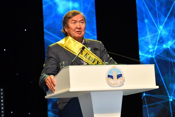 Многим легендарным выпускникам были вручены медали КазНУ "Ерең еңбегі үшін" за вклад в развитие университета. Среди них писатель и общественно-политический деятель Казахстана Олжас Сулейменов. Он выпускник 1959 года геологоразведочного факультета Казахского государственного университета имени С. М. Кирова.