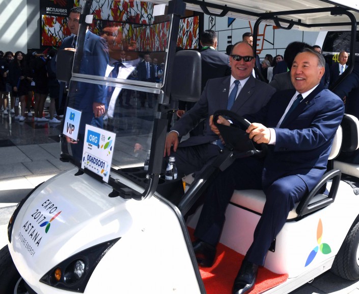 В завершение посещения павильона княжества Нурсултан Назарбаев оставил запись в книге почетных гостей и показал Альберу II национальный павильон Казахстана "Нур Алем". Здесь лидеры двух стран ознакомились с методом подземного скважинного выщелачивания урана, интерактивным макетом термоядерного реактора "Токамак" и другими экспозициями, посвященными культуре и истории Казахстана.