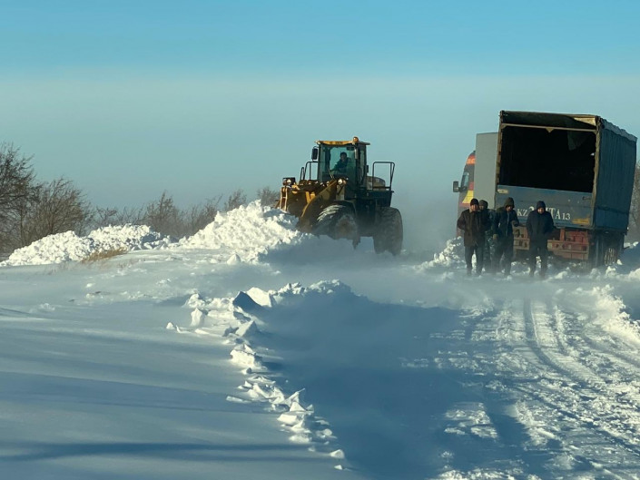 Колонна из фур попала в снежный затор в Павлодарской области