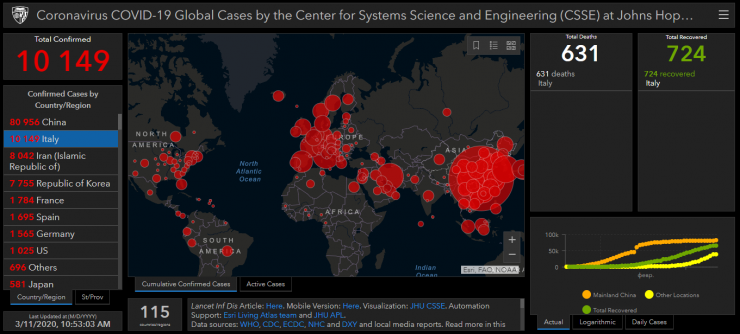 С 12 марта итальянцам и иностранным гражданам, прибывающим из этой страны, будет запрещено приезжать в Казахстан. По заболеваемости Италия вышла на второе место после Китая, а по количеству смертей - на первое место. На 11 марта там заболели 10 149 человек, из них - 631 смерть и 724 человека выздоровели, сообщает Университет Джонса Хопкинса.