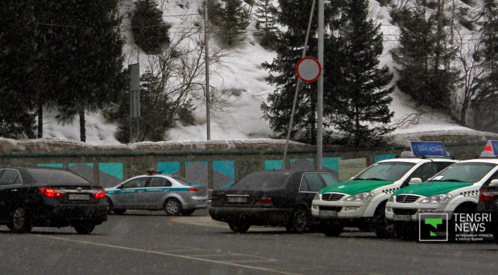 Сейчас близ нового знака на дороге, ведущей на плотину и далее на горнолыжный курорт, стоят полицейские авто. Сотрудники правоохранительных органов запрещают проезд частным автомобилям. Между тем, как удалось заметить, такси разрешено проезжать выше "Медеу".