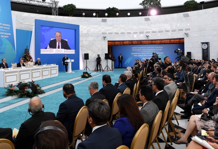 В столице проходит церемония награждения Назарбаевской премией за мир без ядерного оружия и глобальную безопасность с участием Елбасы и Президента.