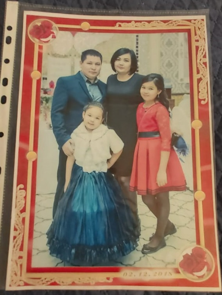 "2007, 2012 жылы туған қыздарымыз бар. 2014 жылы тағы бір қызымыз өмірге келген, бірақ 1 жас 7 айында шетінеп кетті. Сол қызымыздан кейін биыл төртінші қызымыз дүниеге келді. Жолдасым Азамат Сарқанд қаласынан, өзім Талдықорған қаласының тумасымын", - дейді ол.