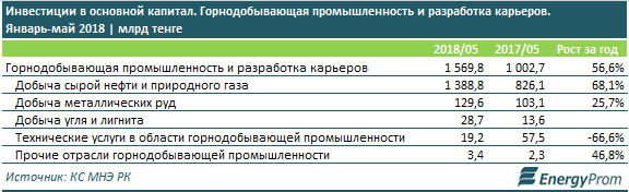 В горнодобывающей сфере сразу 88,5 процента вложений направлено в сферу нефтегазодобычи - 1,4 триллиона тенге, что на 68,1 процента больше, чем годом ранее. Это 65 процентов от всех инвестиций в промсферу.