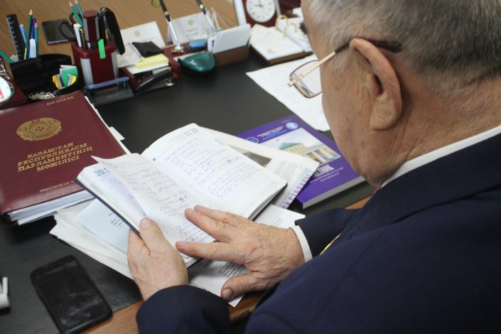Сегодня традиционное пленарное заседание Мажилиса перенесли на 9 утра. Поэтому депутат занимается перечитыванием депутатского запроса и выступления, которое он будет озвучивать в ходе заседания.