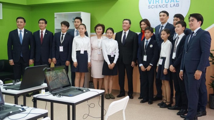 Виртуальную научную лабораторию школе подарила Алия Назарбаева. На современном 3D-оборудовании Аскар Мамин попробовал разобрать турбину ветряной электростанции. Назарбаева исследовала 3D-модель человеческого глаза, а также ознакомилась с симуляцией по экологичным процессам использования альтернативной энергетики.