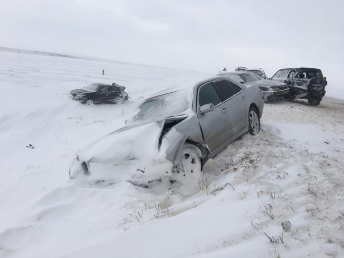 Массовое ДТП произошло на трассе в Актюбинской области Фото департамента полиции Актюбинской области