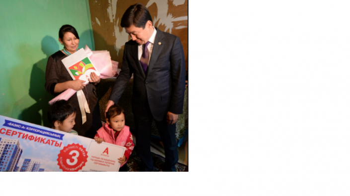 Документы на трехкомнатную квартиру в новом строящемся 14-этажном жилом комплексе "Алмалы", напротив Ледового стадиона "Алматы Арена", многодетной матери вручил сам аким Алматы Бауыржан Байбек.