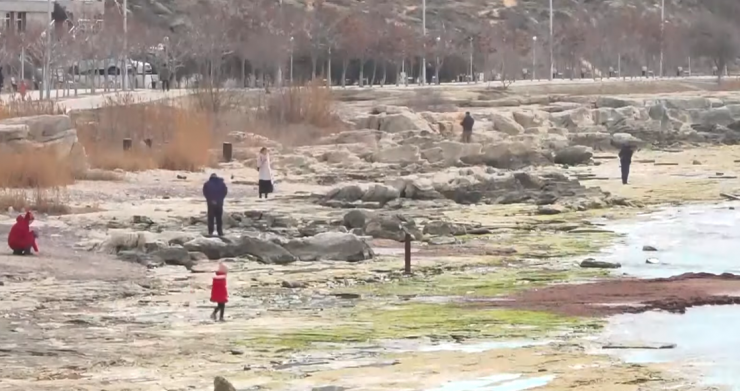 По словам жителей Актау, береговая линия кардинально изменилась. В некоторых местах море отошло на 20 метров и обнажило каменистое дно.
