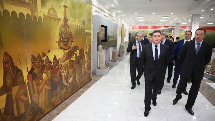 Глава правительства также посетил открытые 25 декабря 2019 года к 80-летию Жамбылской области областной историко-краеведческий музей и художественную галерею при историко-этнокультурном комплексе "Көне Тараз".