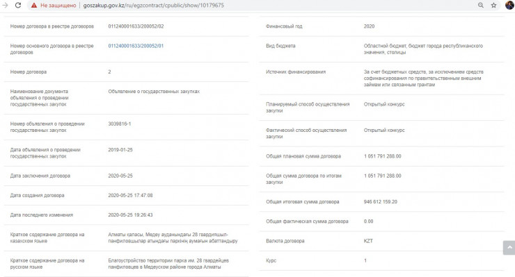 25 мая этого года Управление комфортной городской среды заключило договор с подрядчиком. Информация о закупке появилась на Telegram-канале журналиста Данияра Молдабекова.