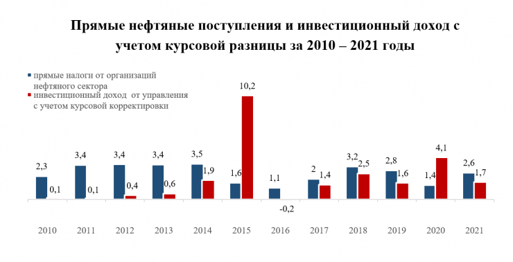 В Министерстве финансов, отвечая на запрос корреспондента Tengrinews.kz, сообщили, что в своем заявлении экономист приводит диаграмму из аудиторского заключения Счетного комитета по контролю за расходованием республиканского бюджета. В пример приведена диаграмма, показывающая поступления в Национальный фонд в виде прямых налогов от организаций нефтяного сектора и инвестиционного дохода с учетом курсовой переоценки за период с 2010 по 2021 год.