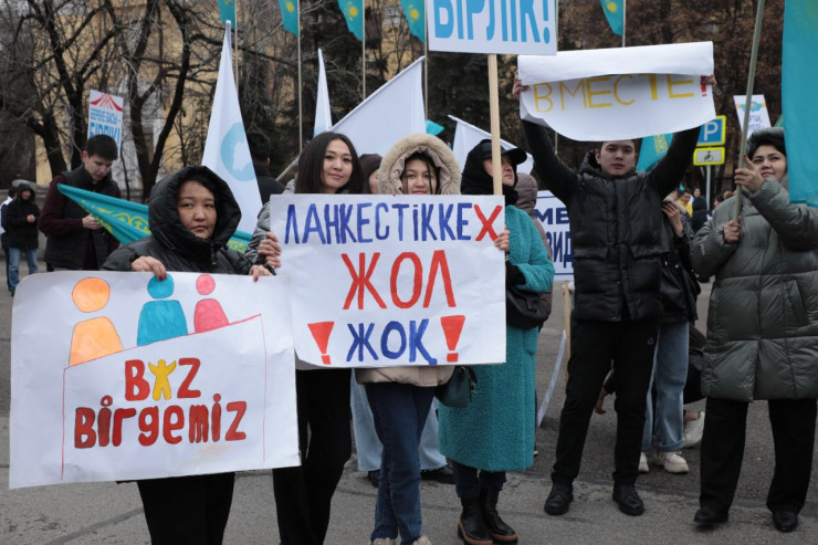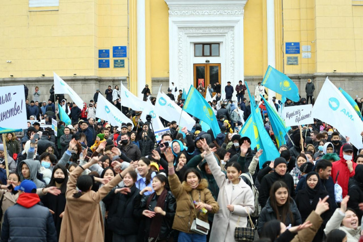 В Алматы прошел митинг, организованный городским филиалом партии Amanat в поддержку Президентской программы политических реформ, озвученной в Послании Главы государства Касым-Жомарта Токаева. В нем приняли участие более 2 тысяч человек.